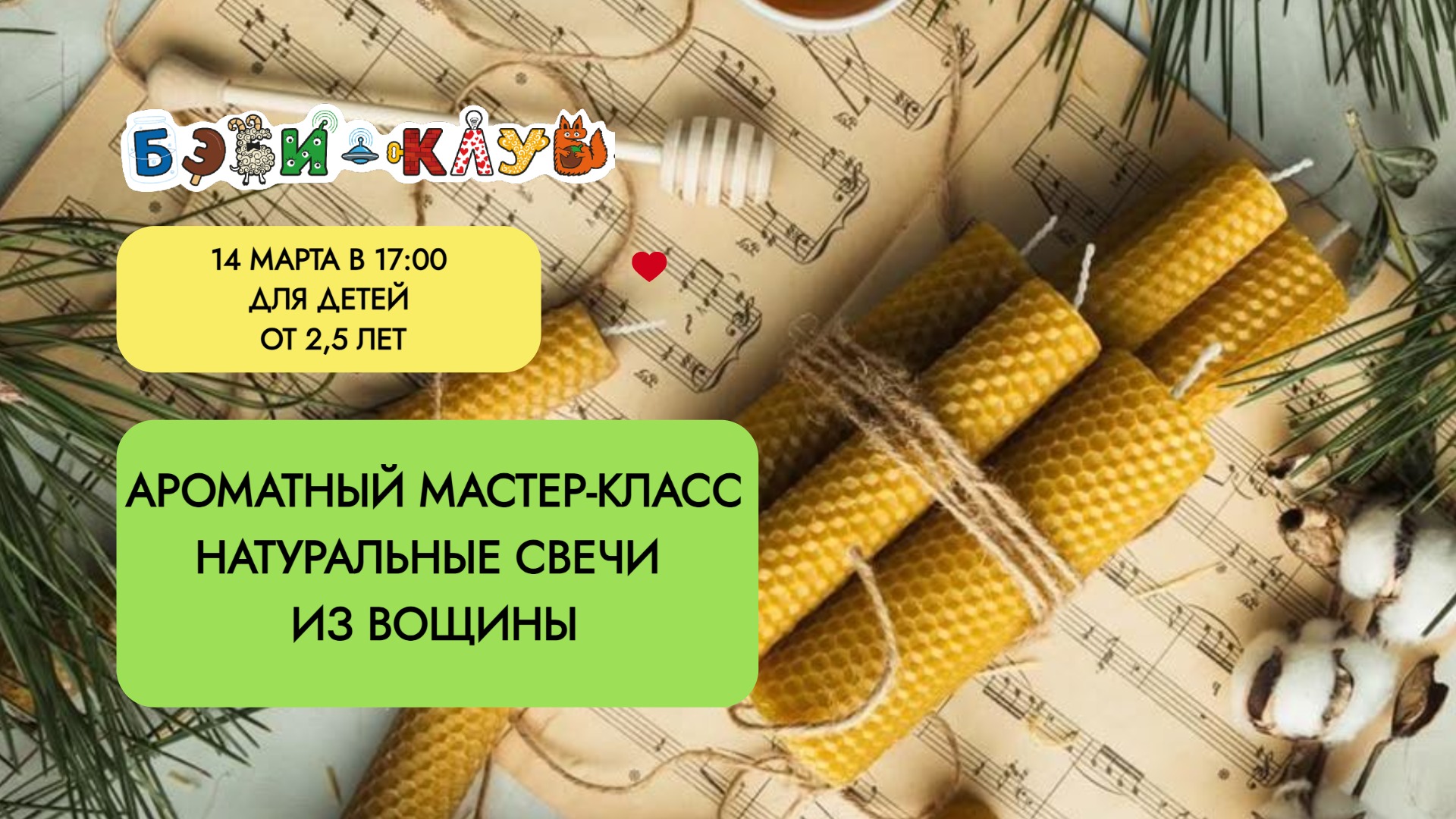 Приглашаем на субботний мастер-класс по изготовлению свечей из вощины